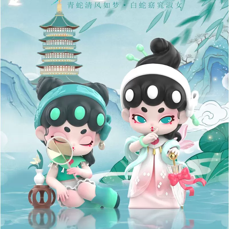 Một ví dụ tiêu biểu là bộ sưu tập túi mù (盲盒 – máng hé, nghĩa là “blind box”) chủ đề Bạch Xà Truyện, được sản xuất bởi hãng 青壹坊 (Qīng Yī Fāng). Bộ sưu tập gồm các mô hình nhân vật Bạch Tố Trinh, Tiểu Thanh, Hứa Tiên và Pháp Hải với phong cách “cổ phong” dễ thương, giúp người hâm mộ cảm nhận truyền thuyết qua góc nhìn hiện đại và sáng tạo.